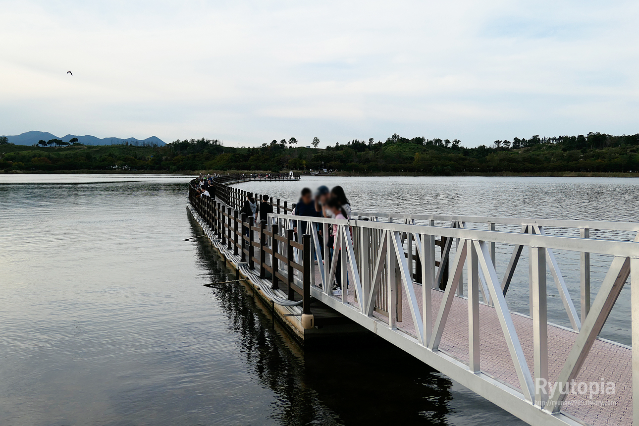 영랑호 중앙을 가로지르는 수상 보행로(인도교)를 발견.
