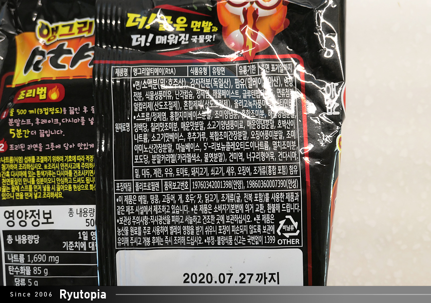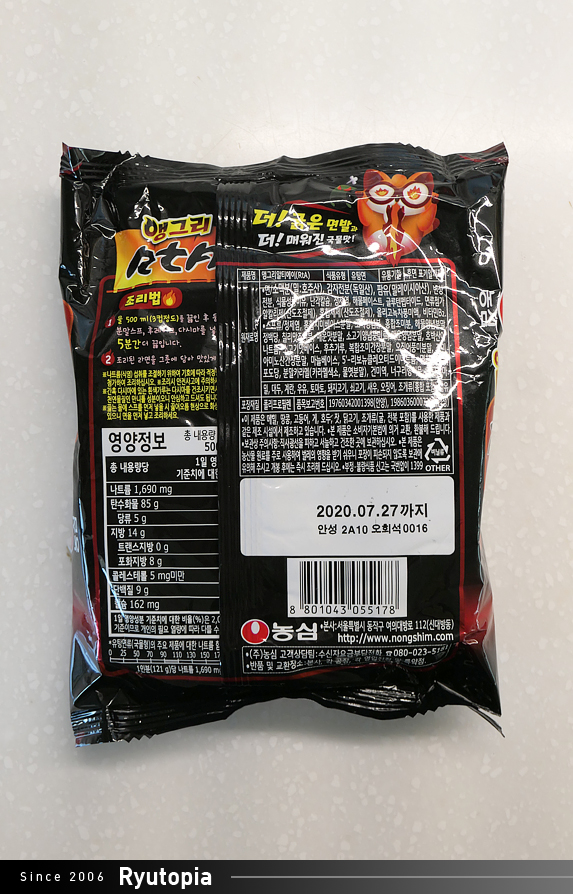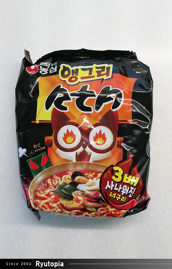 뒤집어진 로고와 눈에서 불을 뿜는 광기어린 너구리에서 엄청 매운 라면이라는 이미지가 확 느껴지는 게 특징인데요,