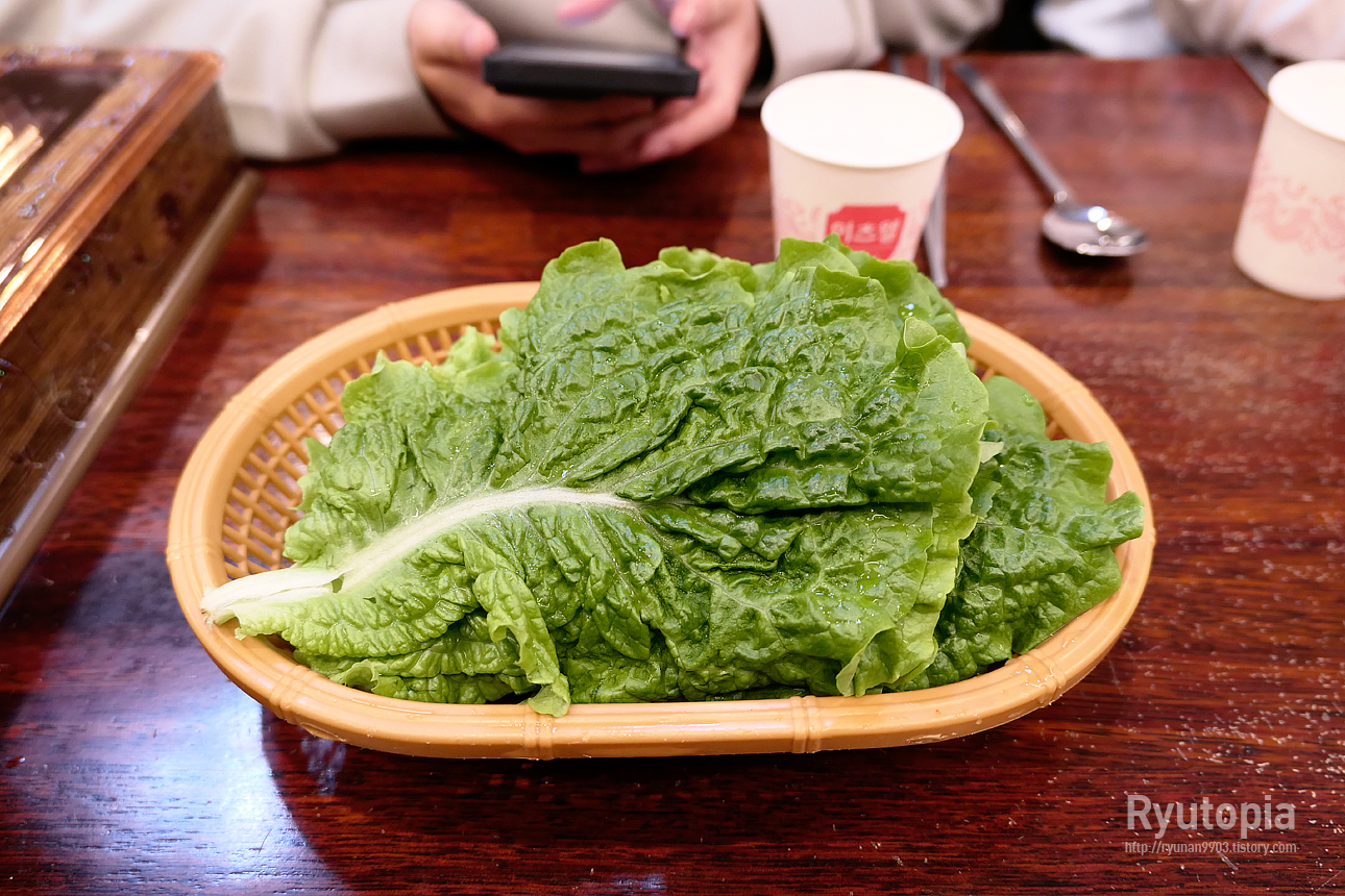 쌈채소로는 소쿠리 둘에 나누어 청상추가 제공됩니다. 상추잎이 꽤 큰 편이라 쌈 싸먹기 딱 좋군요.