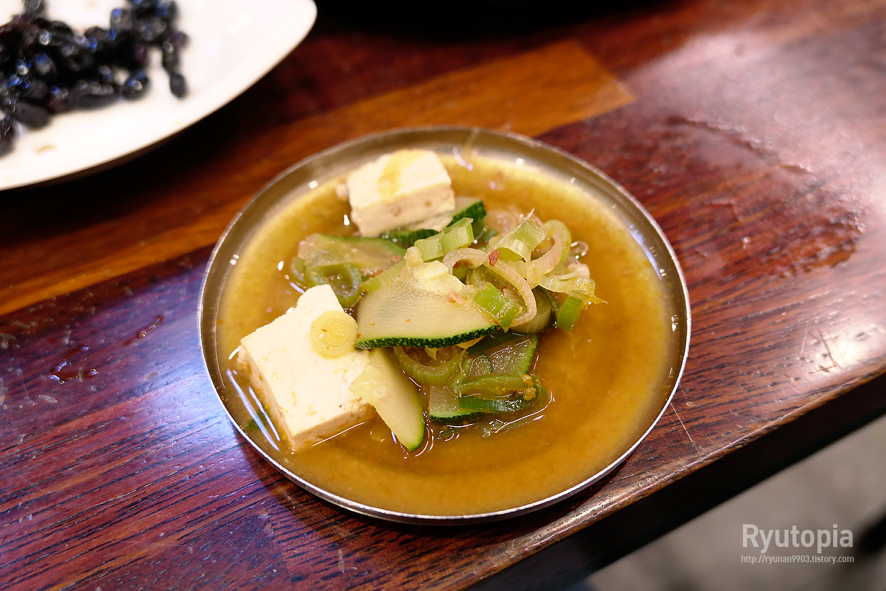 호박, 두부, 파 등을 넣고 끓여내었는데 구수하고 따끈한 맛이 전형적인 한국인이 좋아할 만한 맛입니다.