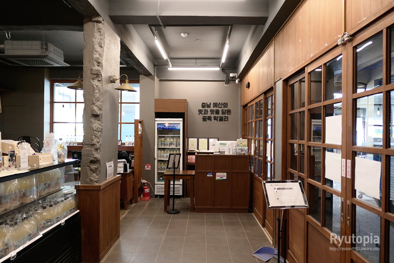 실제 매장 안쪽에 막걸리를 주조하는 공장이 통유리 외벽으로 완전히 오픈되어 있어 만드는 과정을 전부 볼 수 있습니다.