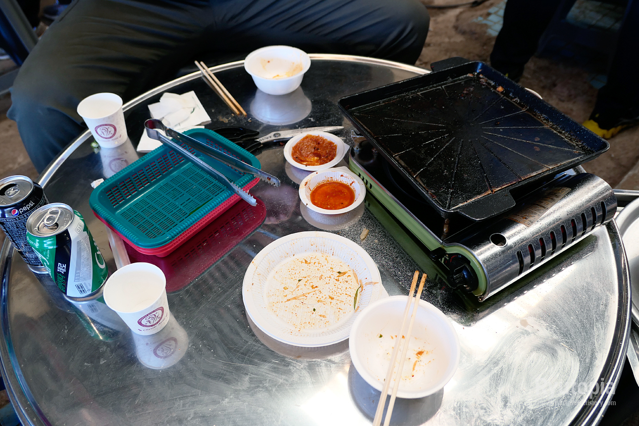 거의 대부분의 손님들은 신광정육점 가서 고기 가서 불판 빌려 고기 구워먹는 식으로 이 장터를 이용하더라고요.