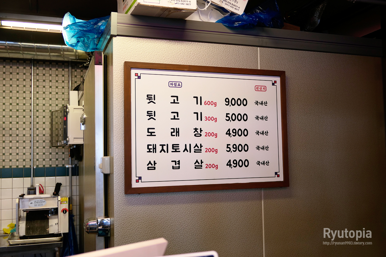 각종 잡다한 부위를 모아놓은 '뒷고기' 가 대표메뉴고 그 외에 도래창, 토시살, 삼겹살 등이 준비되어 있습니다.