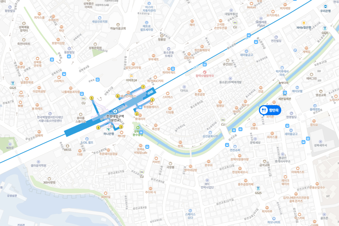 ※ 향만옥 찾아가는 길 : 지하철 4호선 한성대입구역 3번출구 하차 후 개천 따라 쭉 직진, 삼선교로 33-4 1층