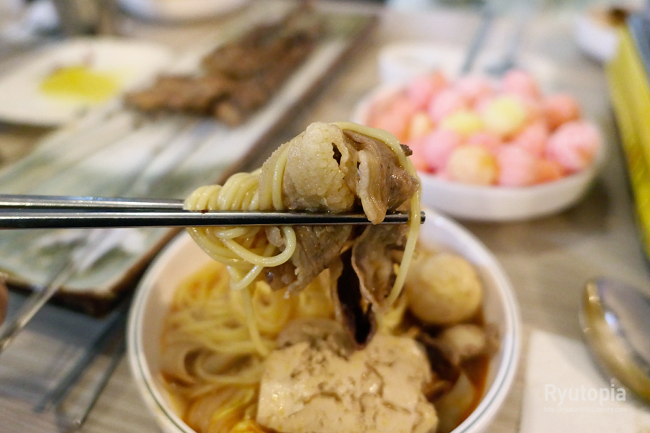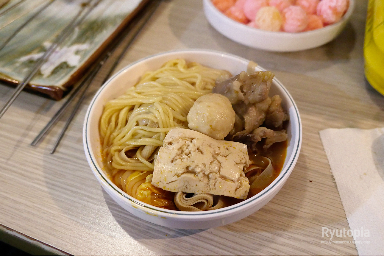 어묵완자볼이라든가 두부, 건두부, 그리고 옥수수소면까지 들어있어 식사 대용으로도 즐길 수 있습니다.