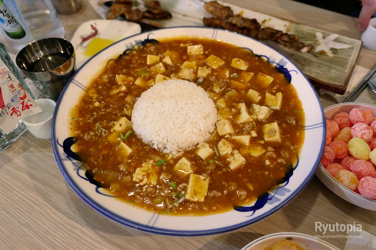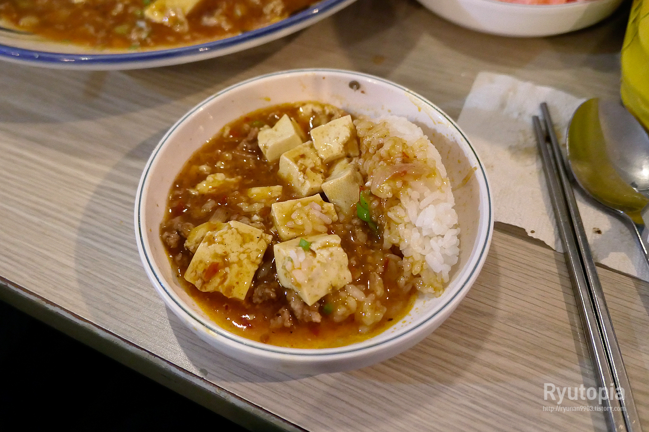 정확히 음식 양은 식사가 아닌 요리용 마파두부인데 거기에 밥이 더해져 식사까지 가능한 마파두부로 제공되었습니다.