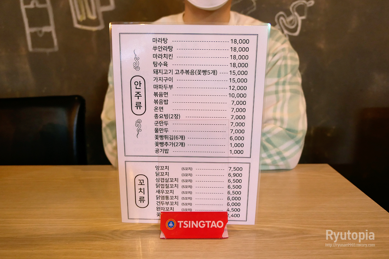 일반 마라탕 전문점처럼 100g 단위로 직접 먹고싶은 재료를 넣어 조리하는 게 아닌 단품 요리로 제공되는 게 특징.