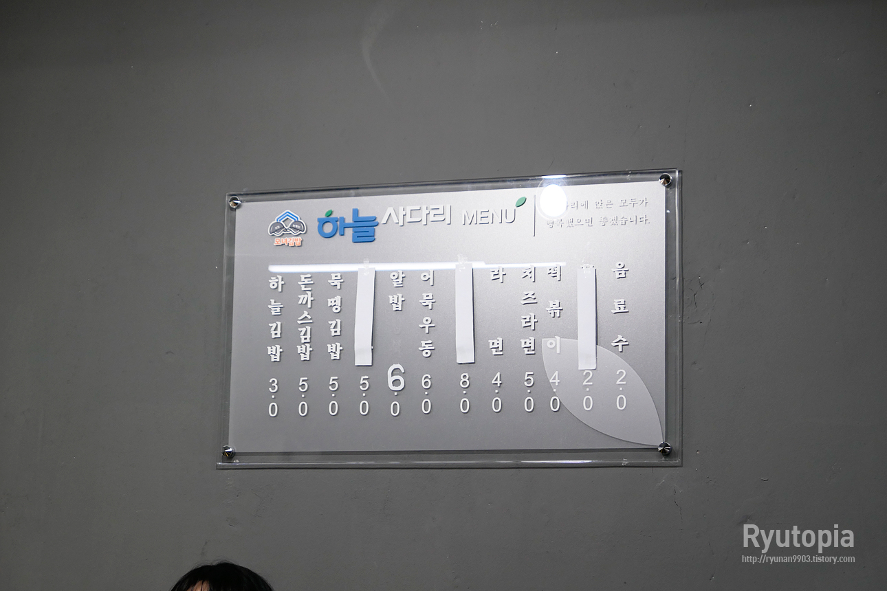 이제 포장이 아닌 매장에서도 느긋하게 김밥과 몇몇 분식들을 즐길 수 있는 하남시 석바대시장의 '하늘사다리'