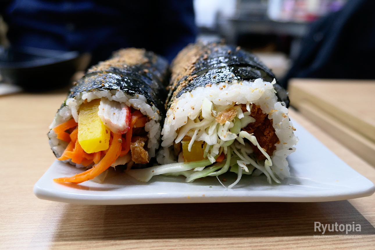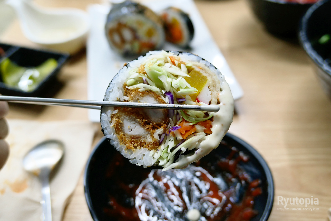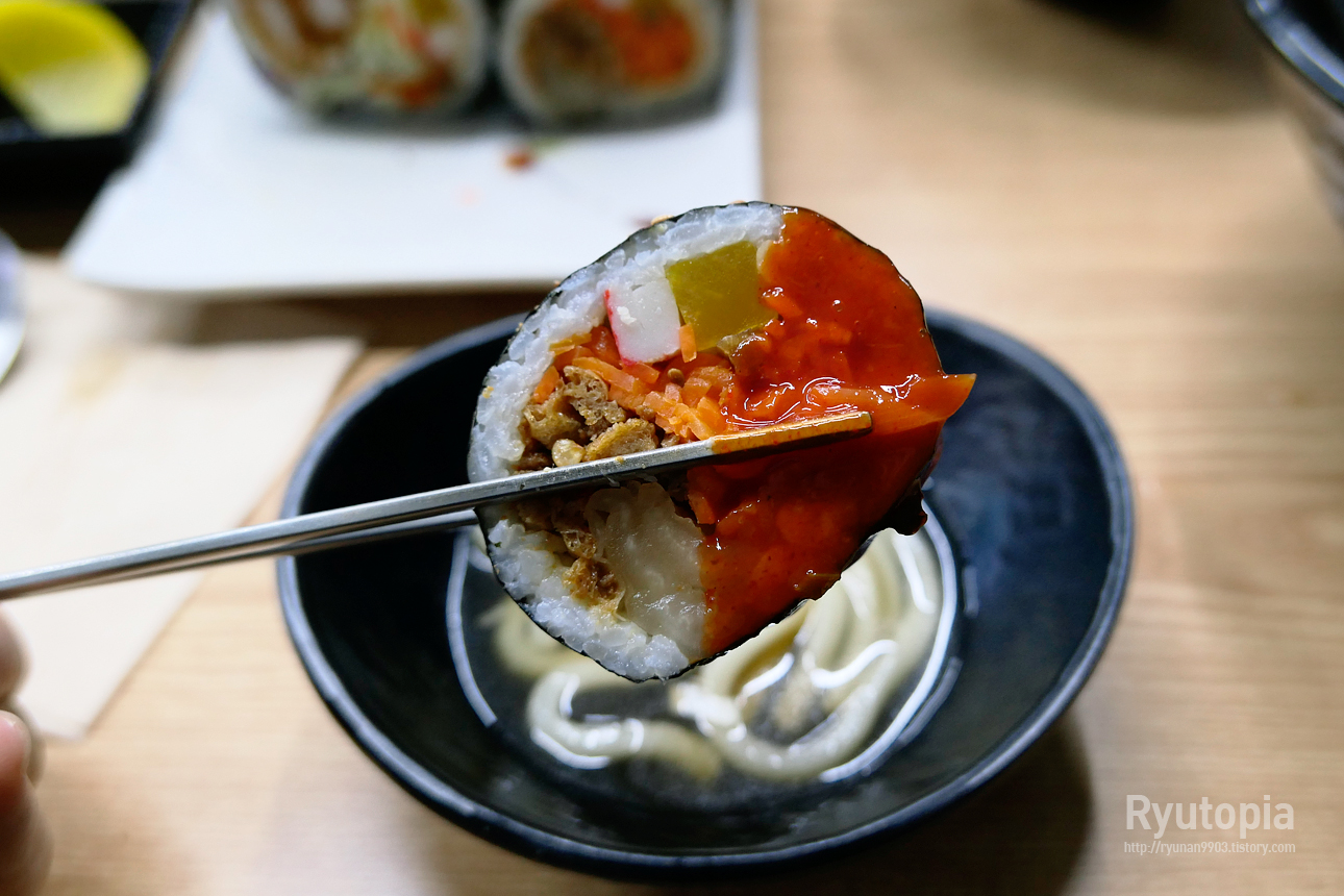 다만 내용물 때문에 김밥이 부스러지기 쉬우니 젓가락으로 들고 먹을 때 조심하시기를...