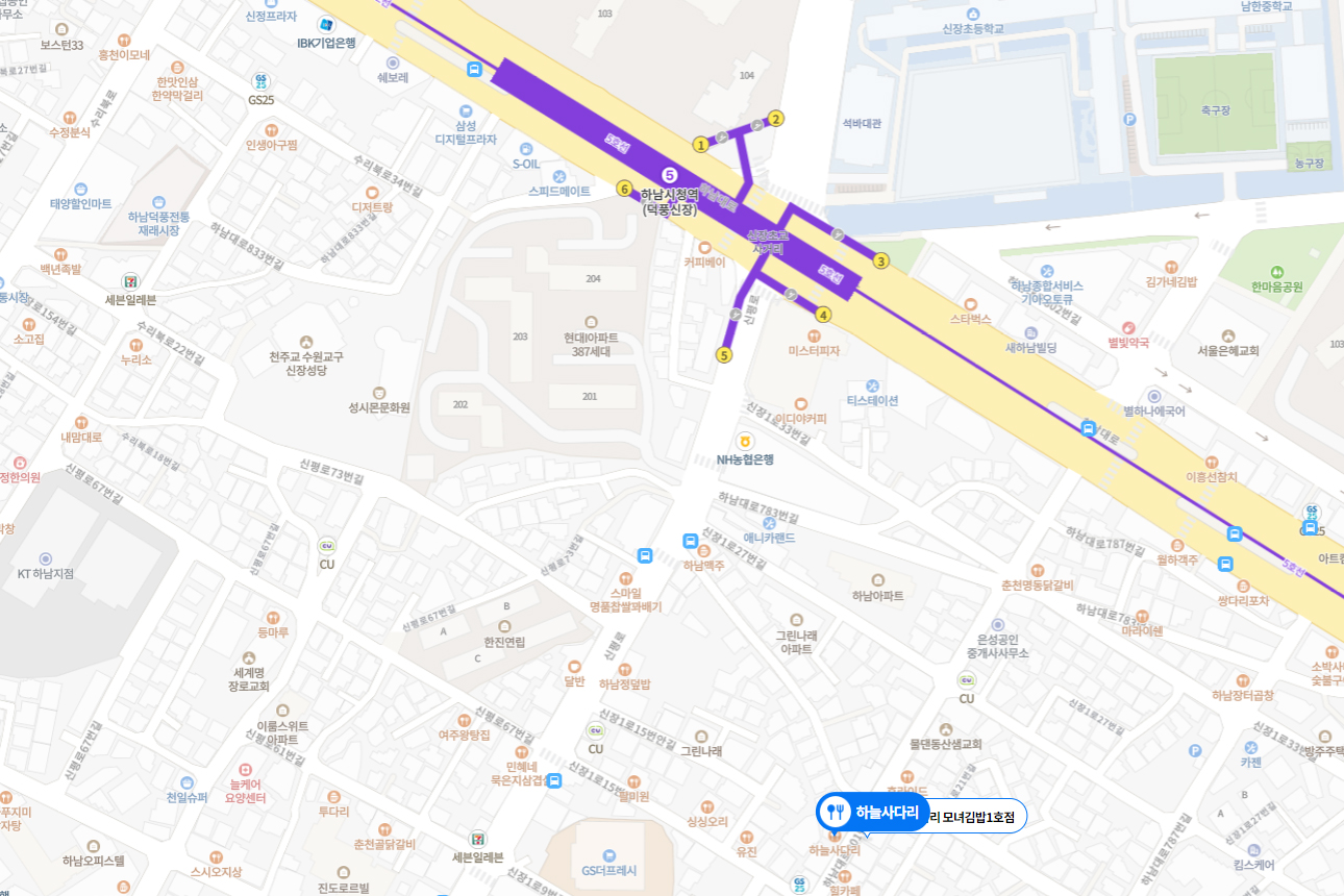 ※ 하늘사다리 모녀김밥 찾아가는 길 : 지하철 5호선 하남시청역 4, 5번출구 하차, 석바대시장 내 위치