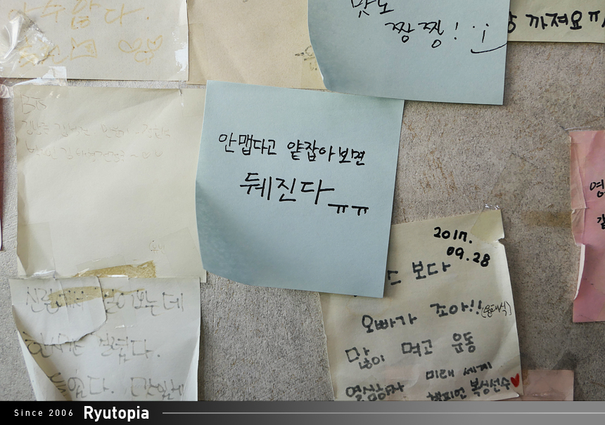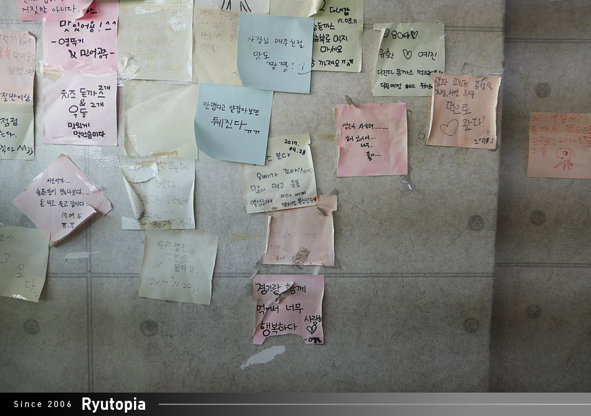 가게 내부에 붙어있는 방문객들이 남긴 포스트잇.