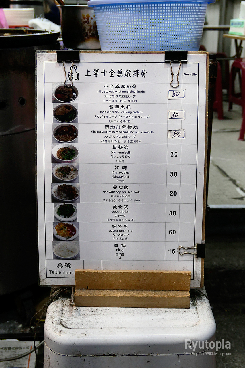 가게 이름은 '士林十全排骨店(사림십전배골점)' 가게 앞에 각종 냄비들이 어지럽게 널려 있고 오픈형 매장의 밥집.