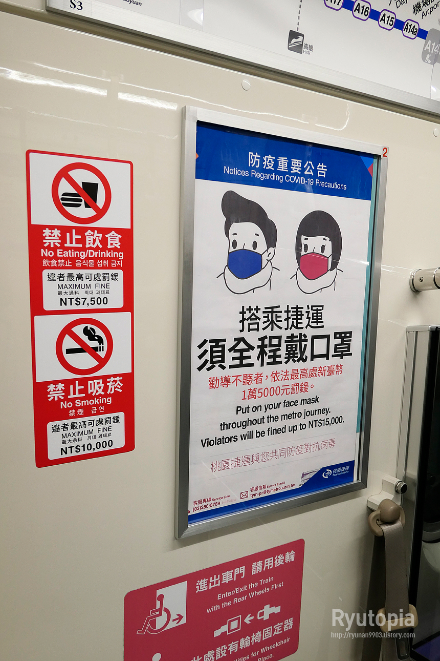 타오위안 공항 첩운 역시 차내 흡연은 말할 것도 없고 음식물 및 음료 섭취가 금지되어 있다.
