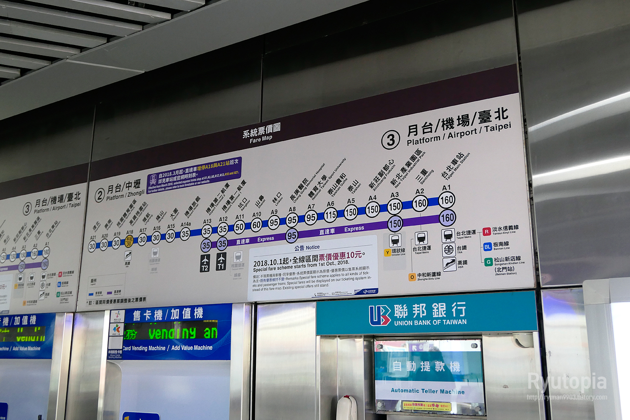 타이베이 메인역에서 타오위안 공항으로 갈 경우 요금이 150NT$나 들어가는데, 우린 35NT$만 지불. 얼마나 좋아!