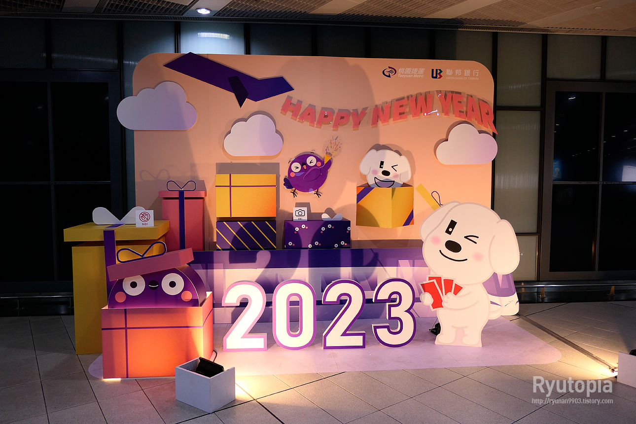 타오위안 공항 터미널 가는 통로에 설치된 2023년 새해를 맞이하는 조형물.