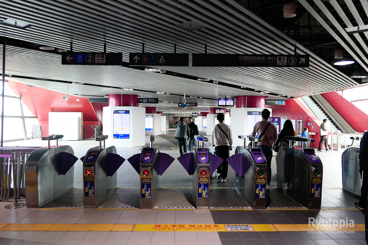 타오위안 공항 첩운(桃園機場捷運) 고속철도 타오위안역 개찰구.