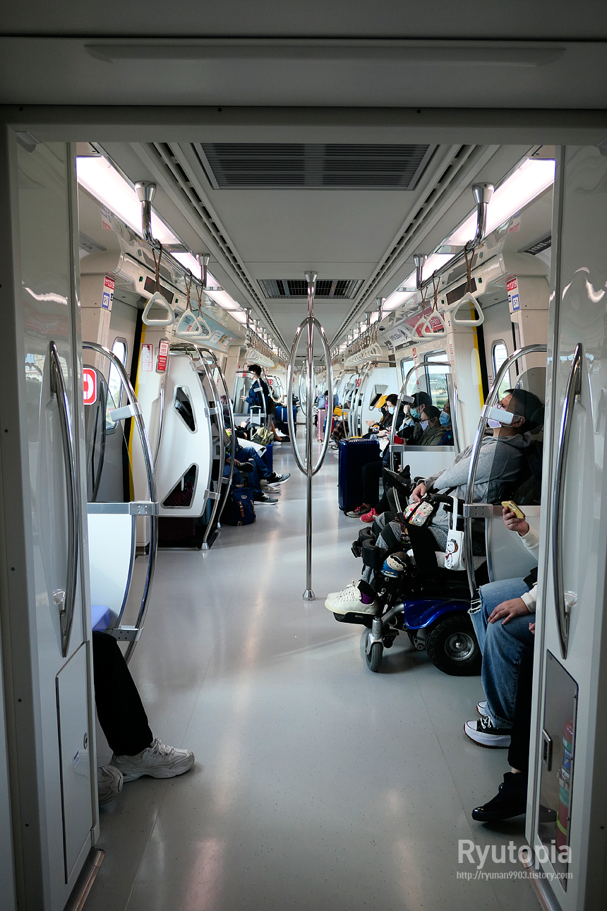 객차간 연결 통로는 중간문 없이 전부 뚫려있고 얼핏 경전철처럼 보일 수 있으나 엄연한 중전철로 운행하고 있다.