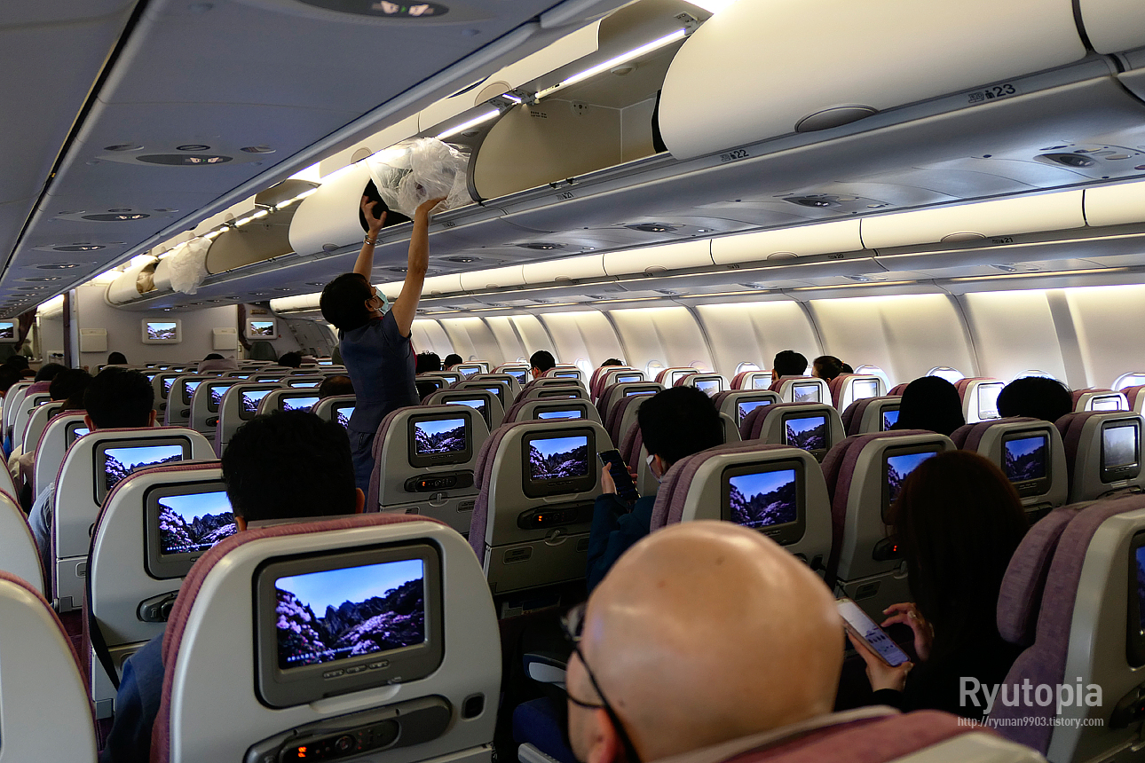 탈 때는 이코노미석 전용 출입구로 탔기 때문에 비즈니스석을 따로 볼 순 없었지만 내릴 때 지나가며 볼 수 있었다.