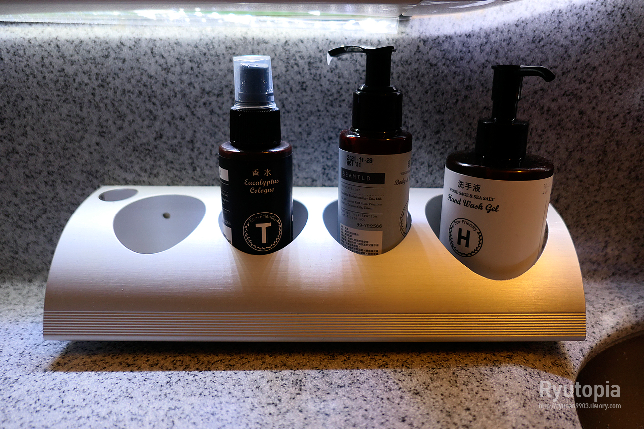 중간에 화장실을 한 번 들렀는데, 화장실 안에 비치되어 있는 핸드워시 한 컷. 그런데 이걸 왜 찍었지...