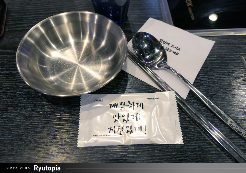 물수건을 포함한 기본 식기 세팅.