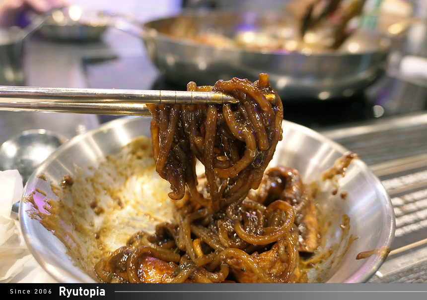 살짝 냄비 바닥에 눌어붙은 쫄면도 맛있네요. 소스 자체의 맛이 꽤 괜찮은 편.