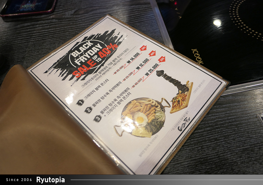 불짜장 탕수육 즉석떡볶이를 비롯하여 크레이지 블랙 몬스터라는 사이드 메뉴를 30~40% 할인하는 행사입니다.