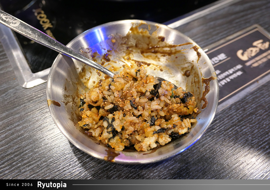 밥과 비교적 잘 어울리는 편. 떡볶이를 먹고 난 뒤 약간의 아쉬움을 마무리하기 딱 좋은 무난한 볶음밥 맛입니다.