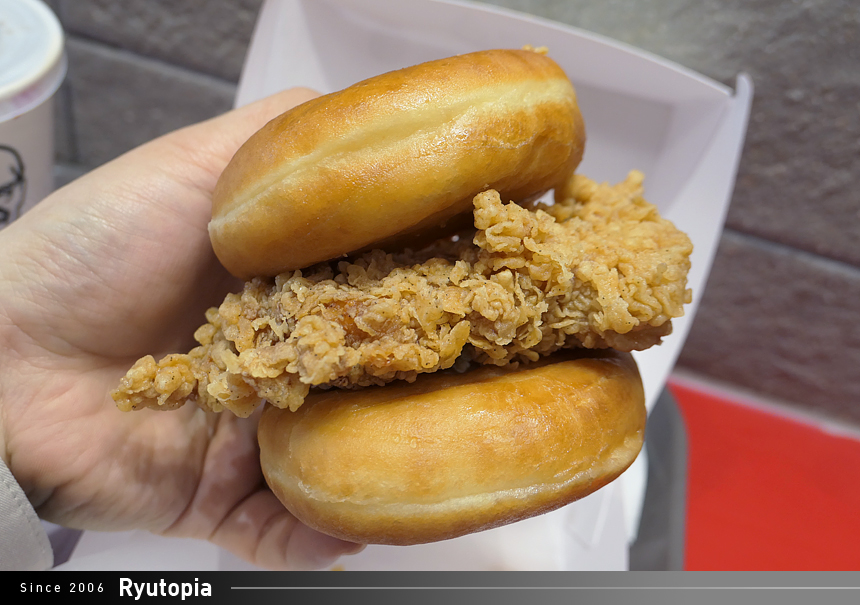그냥 도넛 사이에 치킨 튀긴 걸 끼워먹는 거 뿐이라 좀 그렇지 않나... 라는 생각.