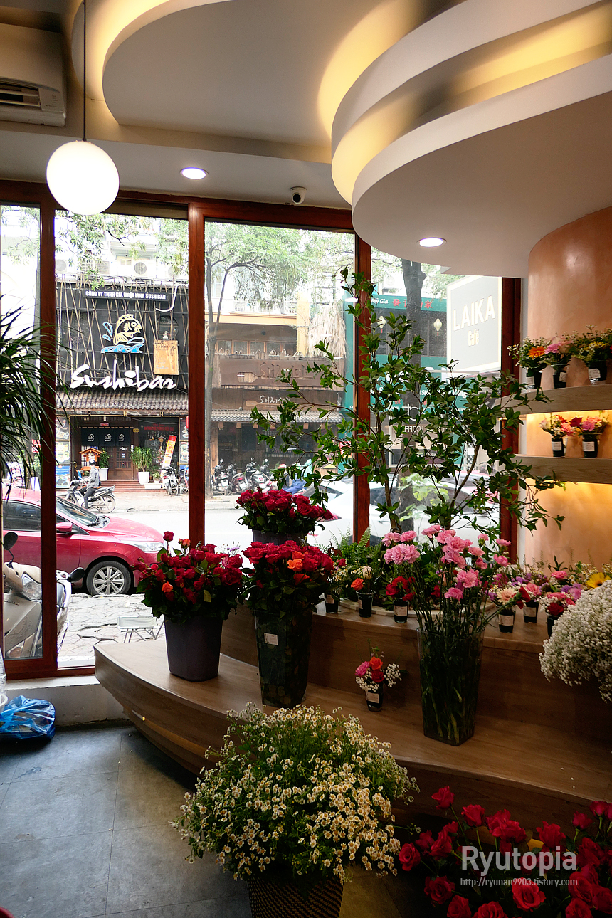 그냥 평범한 카페는 아니고 꽃을 함께 취급하는 카페인 듯, 이렇게 꽃다발이 케익 위에 놓여있는 걸 볼 수 있다.