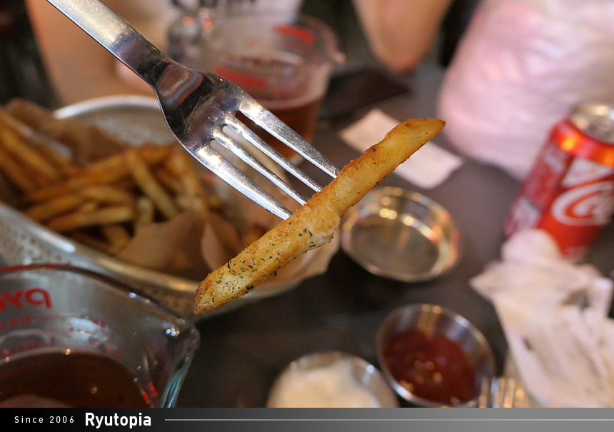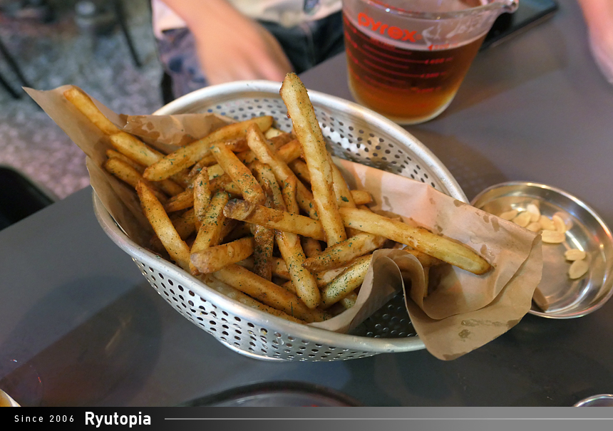 배 채우면서 먹기엔 좀 부족하지만 가벼운 맥주 안주로 즐기기 좋은 갓 튀긴 따끈따끈한 감자튀김.