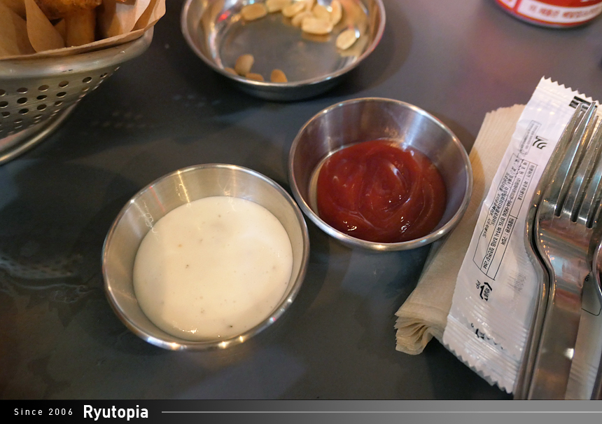 소스는 타르타르 소스와 케첩, 두 가지가 제공되는군요.