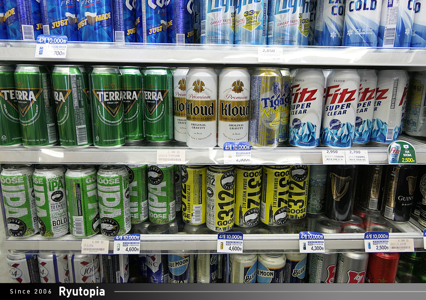 바닷가 근처 편의점에서 맥주 구매. 이 근방 편의점들은 이렇게 맥주 매대를 크게 준비해놓을 정도로