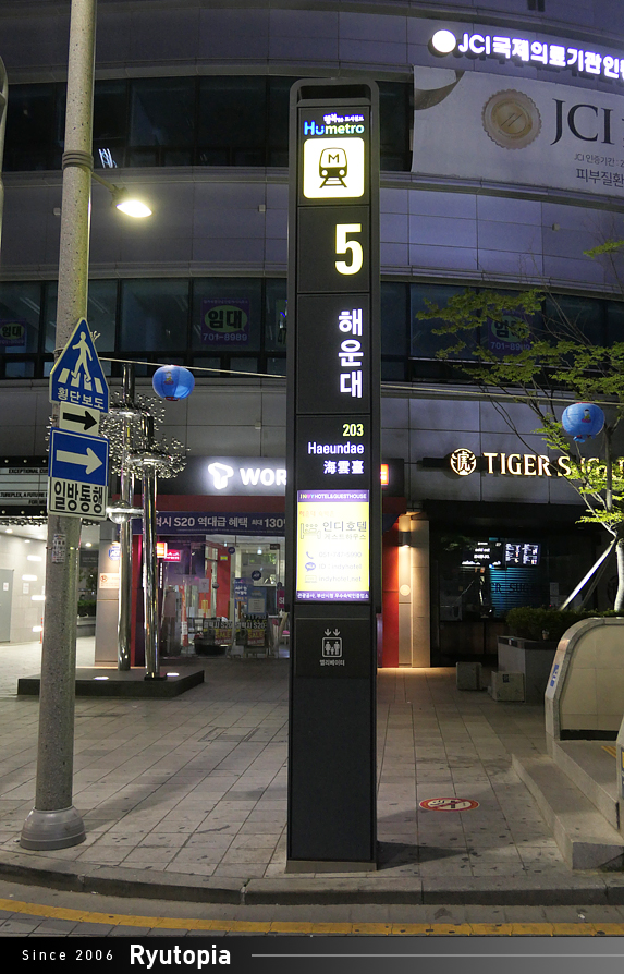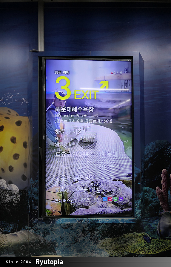 1호선 중앙역 17번 출구와 마찬가지로 해운대역 3번 출구 나가는 곳 방향엔 토요코인 호텔 해운대지점 안내가 되어 있습니다.