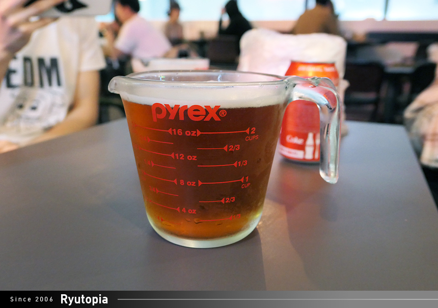 진짜 비커를 사용하는 건 아니고 전용잔을 따로 만든 것 같은데, 눈금 표시가 되어있는 게 흡사 비커같이 보여서...