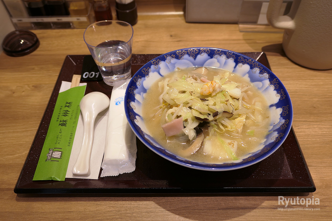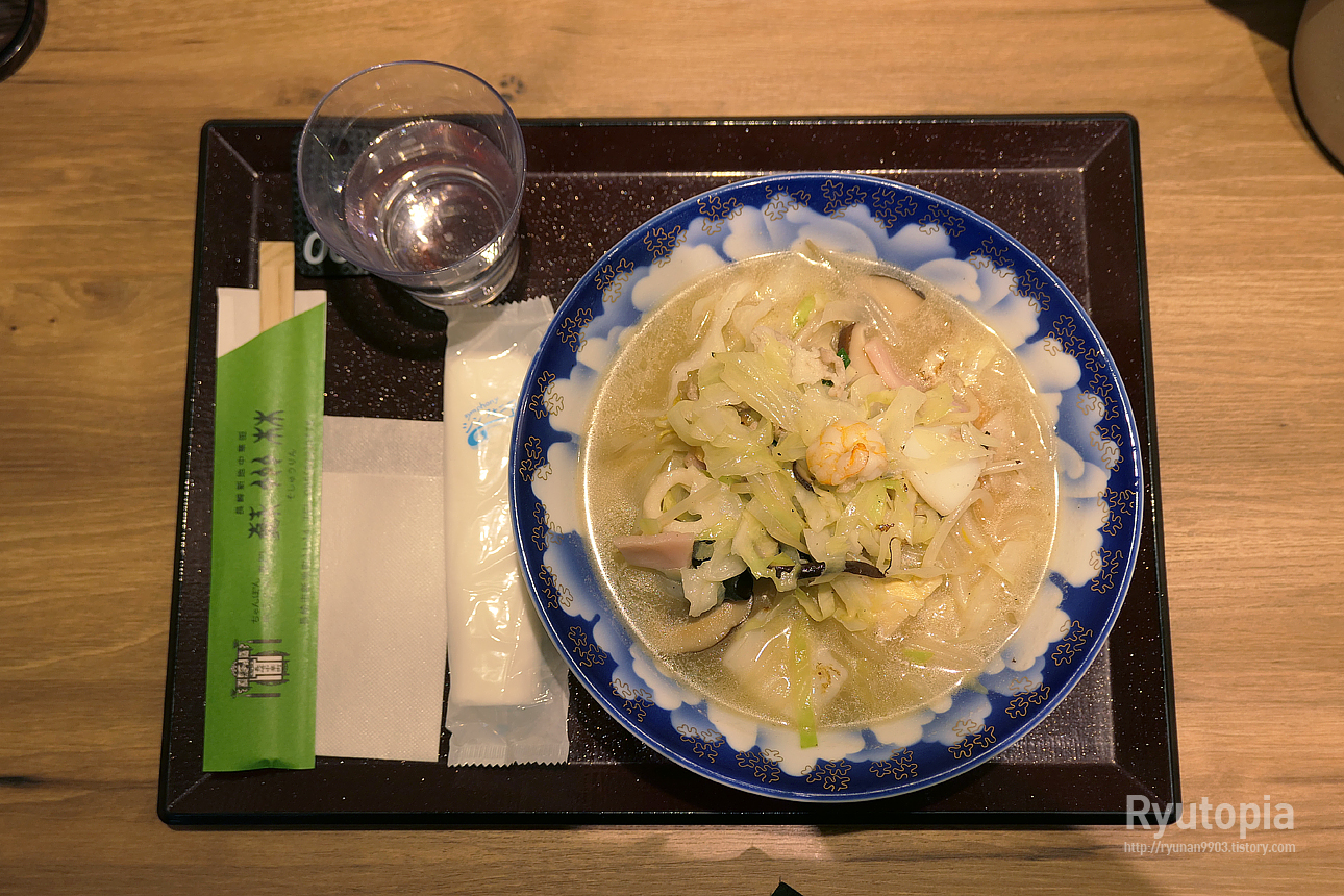 '나가사키 짬뽕(長崎ちゃんぽん - 1,100엔)' 은 작은 쟁반에 수저, 젓가락, 물티슈와 함께 받쳐 서빙되어 나온다.