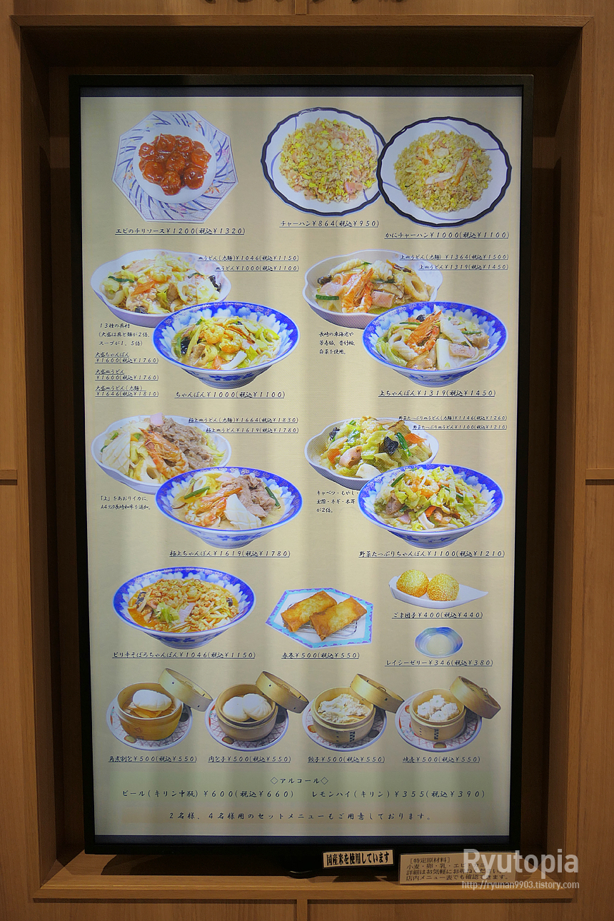 왼쪽 위가 가장 기본 나가사키 짬뽕으로 가격은 1,000엔(세후 1,100엔). 곱배기 메뉴도 따로 존재한다.