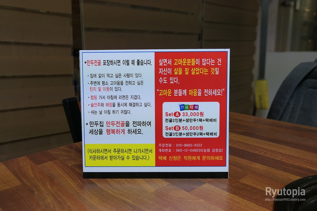 포장 판매도 하고 있으니 포장해가서 집에서 끓여먹는 것도 좋습니다. 다만 전 여기가 멀지 않아 직접 가서 먹으면 되니