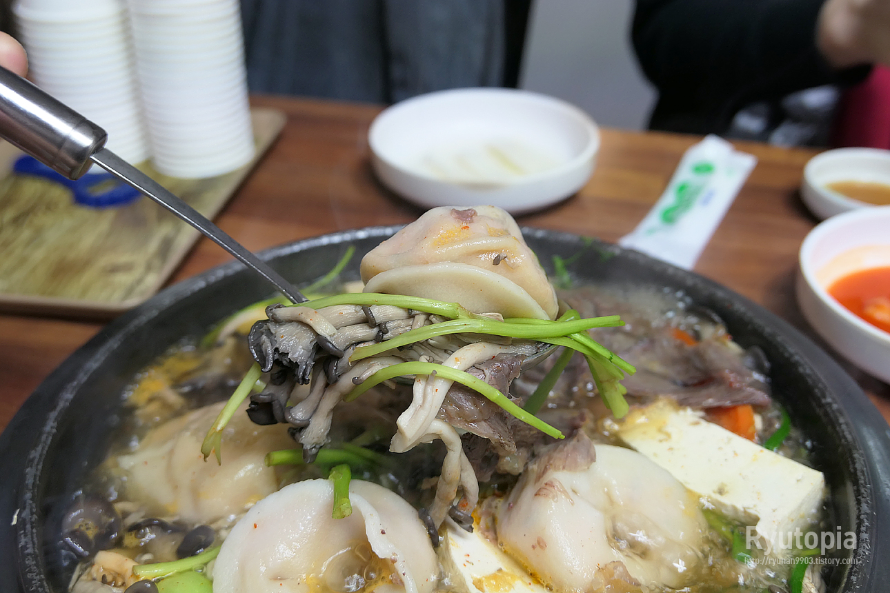 혼자 오는 손님은 전골은 못 먹지만 대신 만두뚝배기, 떡만두국, 만두국, 떡국 같은 1인 식사 메뉴가 따로 있습니다.
