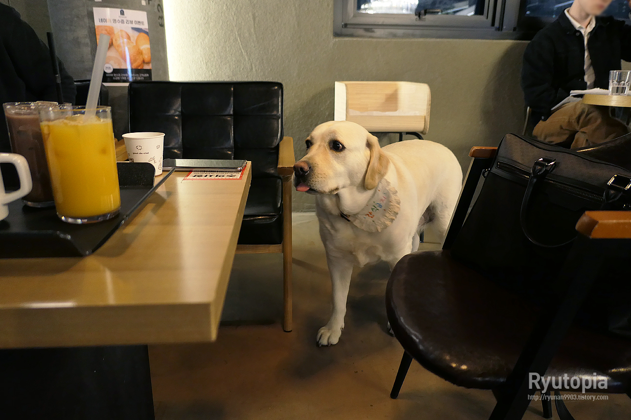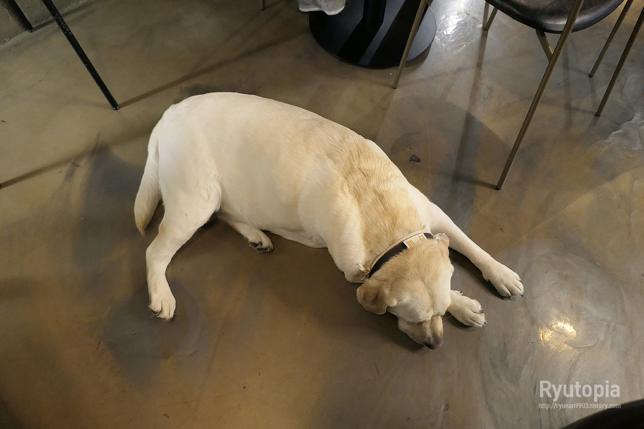 이 아이 이름은 매장에서 키우는 '라떼' 라고 하는 친구입니다.