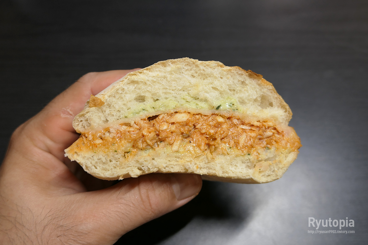 바게트번의 두께도 꽤 두툼하긴 한데 딱딱하지 않고 나름 겉은 바삭하고 안은 부드럽게 씹히는 질기지 않은 식감.