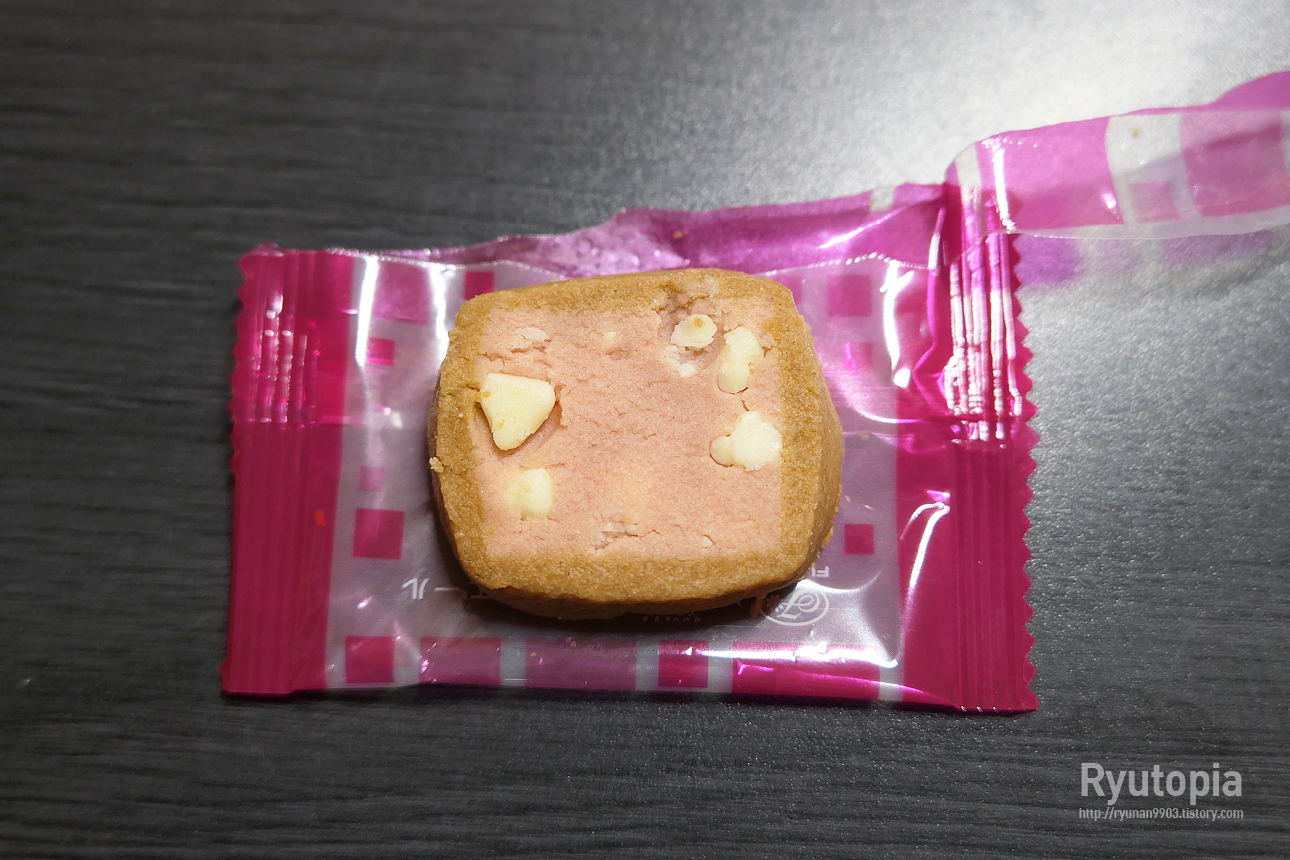 처음 먹었을 때 되게 익숙한 질감과 맛을 느꼈는데 그 편의점에서 팔리는 사과쿠키, 딸기쿠키 있잖아요, 그것과 유사한