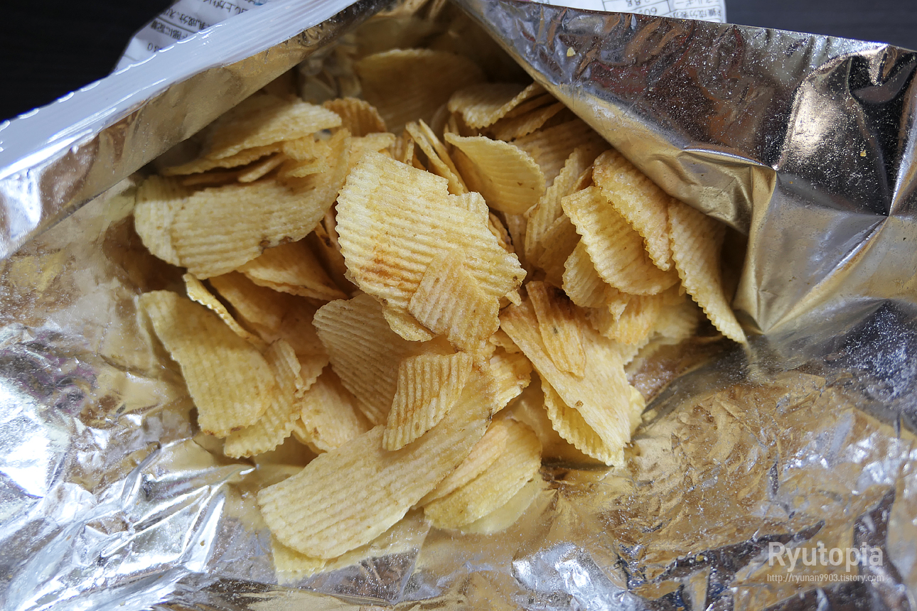 식감과 풍미에 복숭아 잼이 첨가된 맛이라고 해야 할까요, 포테이토 칩과는 달리 꽤 진한 복숭아 풍미가 전해져와서