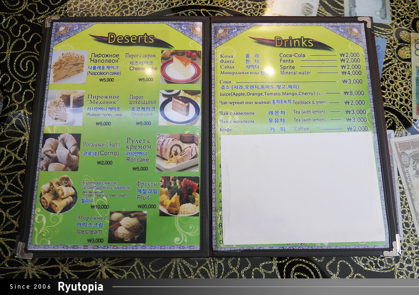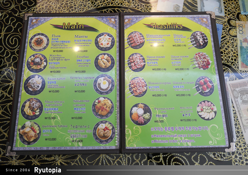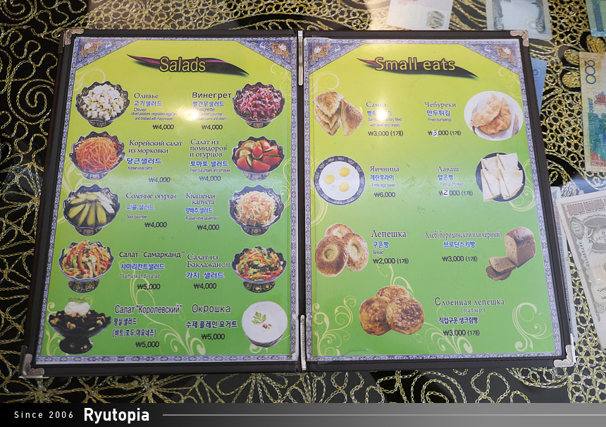 스타 사마르칸트만큼은 아니지만 메뉴판에 한글이 표기되어 있어 주문하는 데 큰 어려움은 없습니다.