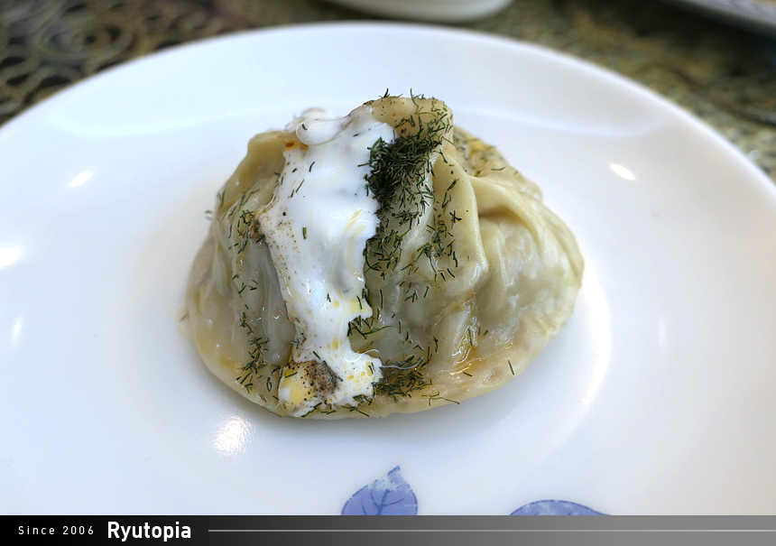 기름진 소스와 사워크림이 뿌려져 나온다는 차이점 외에는 그 외형이 한국의 왕만두와 그리 큰 차이가 없어보입니다.