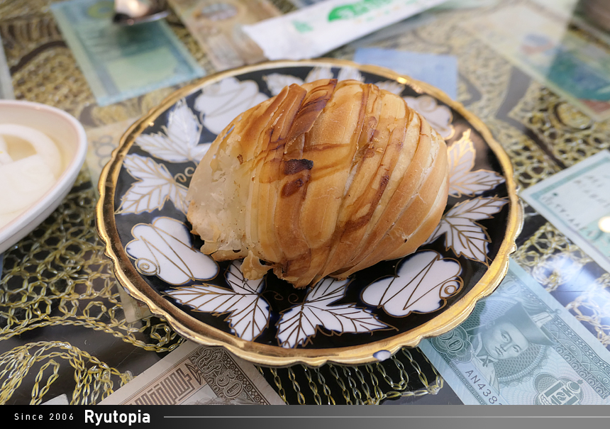 안에 들어있는 양고기 만두소는 누린내 없고 바삭한 빵과 잘 어울리는 고기완자의 맛.