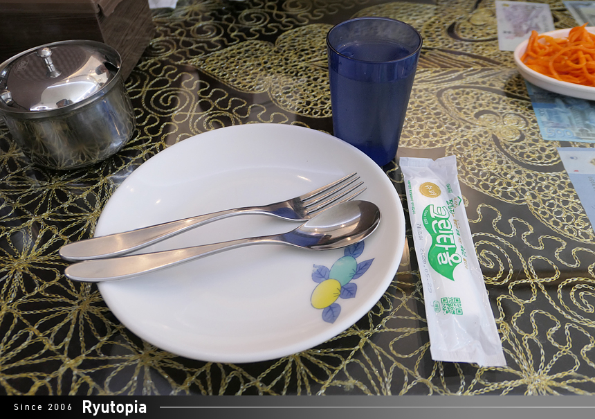 물수건을 포함한 기본 식기 세팅 완료.