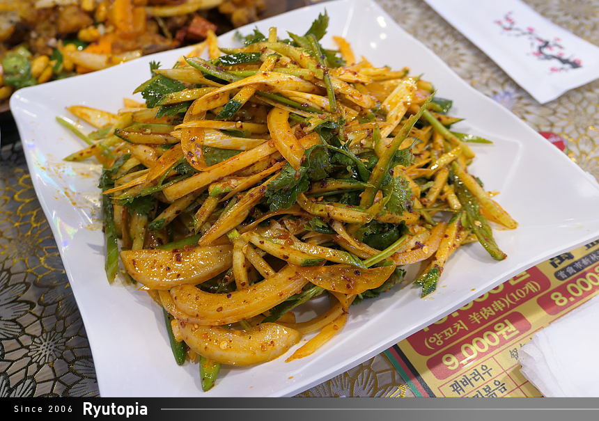 먹으면서 내내 '이 냉채에 고수만 빼고 도토리묵을 넣으면 그대로 도토리묵 무침이 되지 않을까?' 란 생각도 들었습니다.