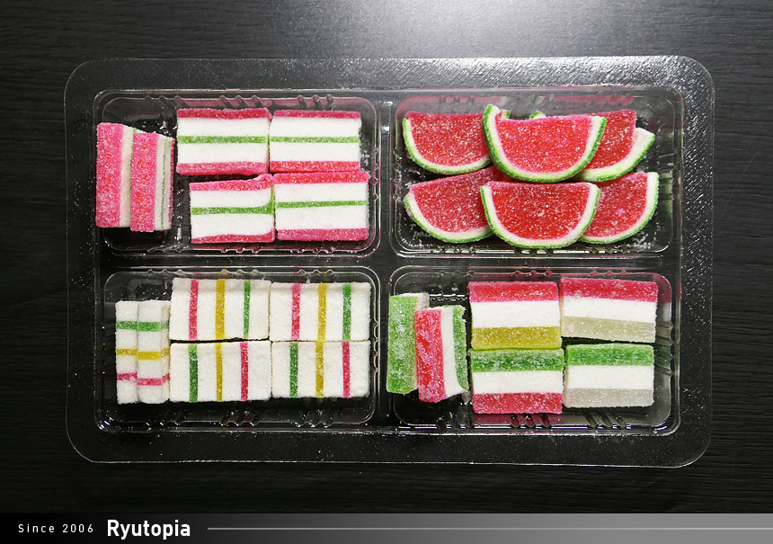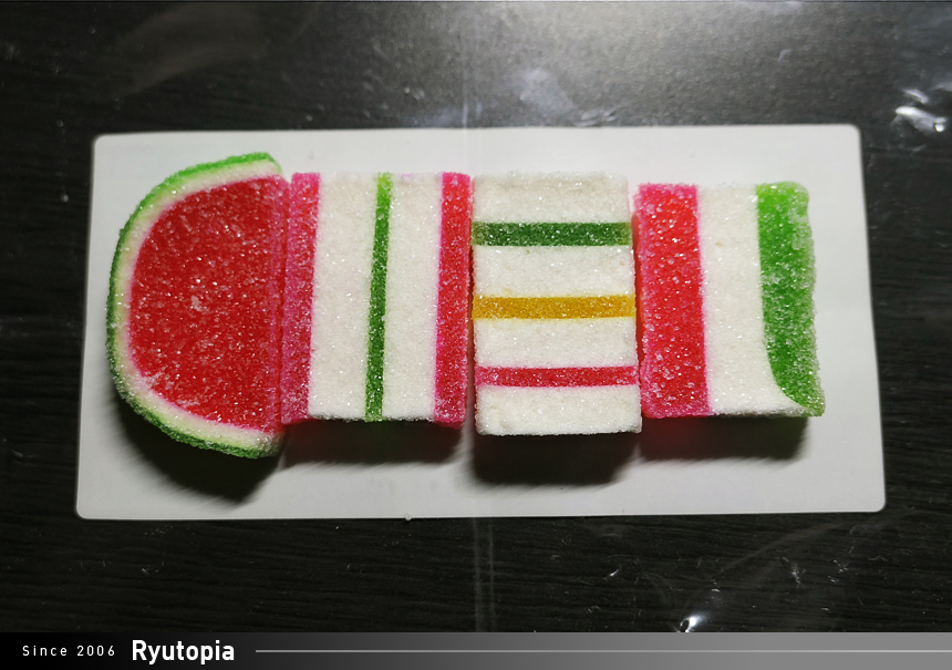 총 네 종류의 제리가 들어있습니다. 전부 기억 속에 있는 그 모양 그대로네요. 특히 수박제리는 더더욱 기억에 남습니다.
