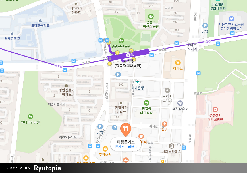 ※ 주양 미림돈까스(현재 폐점) 찾아가는 길 : 지하철 5호선 고덕역 4,5번출구 하차, 주양쇼핑 지하 1층에 위치