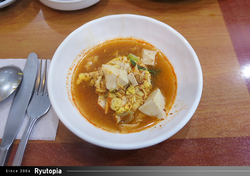 서비스 찌개라고는 하지만 단품으로 주문한 것과 큰 차이 없을 정도로 순두부가 넉넉하게 들어있습니다.